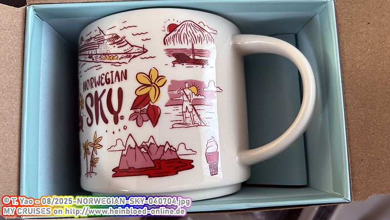 We received a farewell gift from NORWEGIAN SKY: Starbucks cups. Those will certainly be a rarity in the future. We were very happy about this. However, we only unpacked them once we got home: better safe than sorry.
