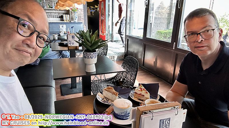 Ein paar Minuten früher! Und ich hätte das perfekte Motiv gehabt: NORWEGIAN SKY fährt der Sonne entgegen.Dann geht es erstmal zurück zum Hotel. Uns erwartet ein tolles Frühstück.