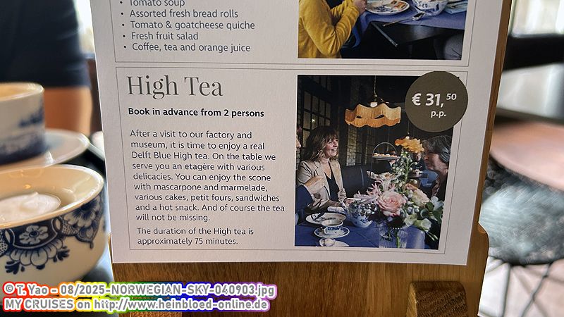 Wir bekamen ein Abschiedsgeschenk von der NORWEGIAN SKY: Starbucks-Becher. Die werden ja künftig Seltenheitswert haben. Hierüber freuen wir uns sehr. Diese hatten wir allerdings erst zu Hause ausgepackt: sicher ist sicher.Wir verabschieden uns bis morgen und fahren zum nächsten Hafen: Zeebrugge. Wir fahren an der Royal Delft Manufaktur vorbei. Das ist eine sehr gute Gelegenheit noch ein Gastgeschenk zu besorgen. Schließlich sind sie unseretwegen ja nicht in der Stadt gewesen und IJmuiden ist ja nicht wirklich der Nabel der Welt. Also müssen wir denen etwas typisch holländisches mitbringen. Man sollte auch unbedingt mal kurz in den Garten, in dem auch sehr schöne Motive als Fliesen an den Mauern befestigt sind.