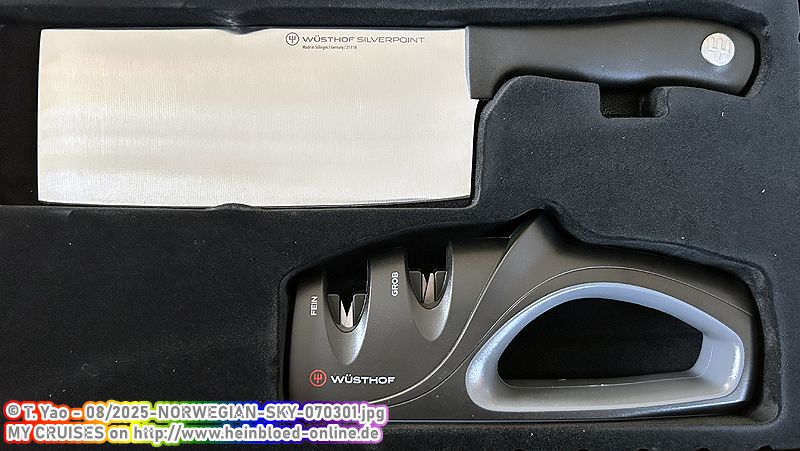 Zu Hause lege ich dann mit meinem neuen Kochbeil los, das ich in Solingen abgeholt habe. Ich hätte nicht gedacht, dass es sich damit so toll schneiden lässt. Durch die Schwere ist es noch viel einfacher, Druck auf das Schneidgut auszuüben und Verletzungen zu vermeiden. Man kann so schön darauf loslegen und später fast so schön alles kleinhacken wie auf einem Kreuzfahrtschiff. Es sieht richtig edel aus, wenn aus Gemüsewürfeln, Gemüsewürfelnchen werden, die in der Suppe schwimmen. Damit hole ich mir bis zur nächsten Kreuzfahrt eben Kreuzfahrt-Feeling nach Hause. Hier habe ich dann mal NORWEGIAN SUN gebucht, die ja 2027 die Flotte verlässt. Mit ihr verbinden wir ja auch sehr schöne Reisen: NORWEGIAN SUN 2012 nach Island und NORWEGIAN SUN 2019 ans Kap Horn. Vielleicht können wir ja hier dann vom Typ „Abschied“ nehmen. Angezahlt ist. Ob wir tatsächlich fahren, hängt auch von der weiteren Preisentwicklung ab. Aber zumindest geben wir NCL eine neue Chance. So viel hat der Besuch bei Freunden an Bord der NORWEGIAN SKY bewirkt.Die anderen Reisen in diesem Blog/