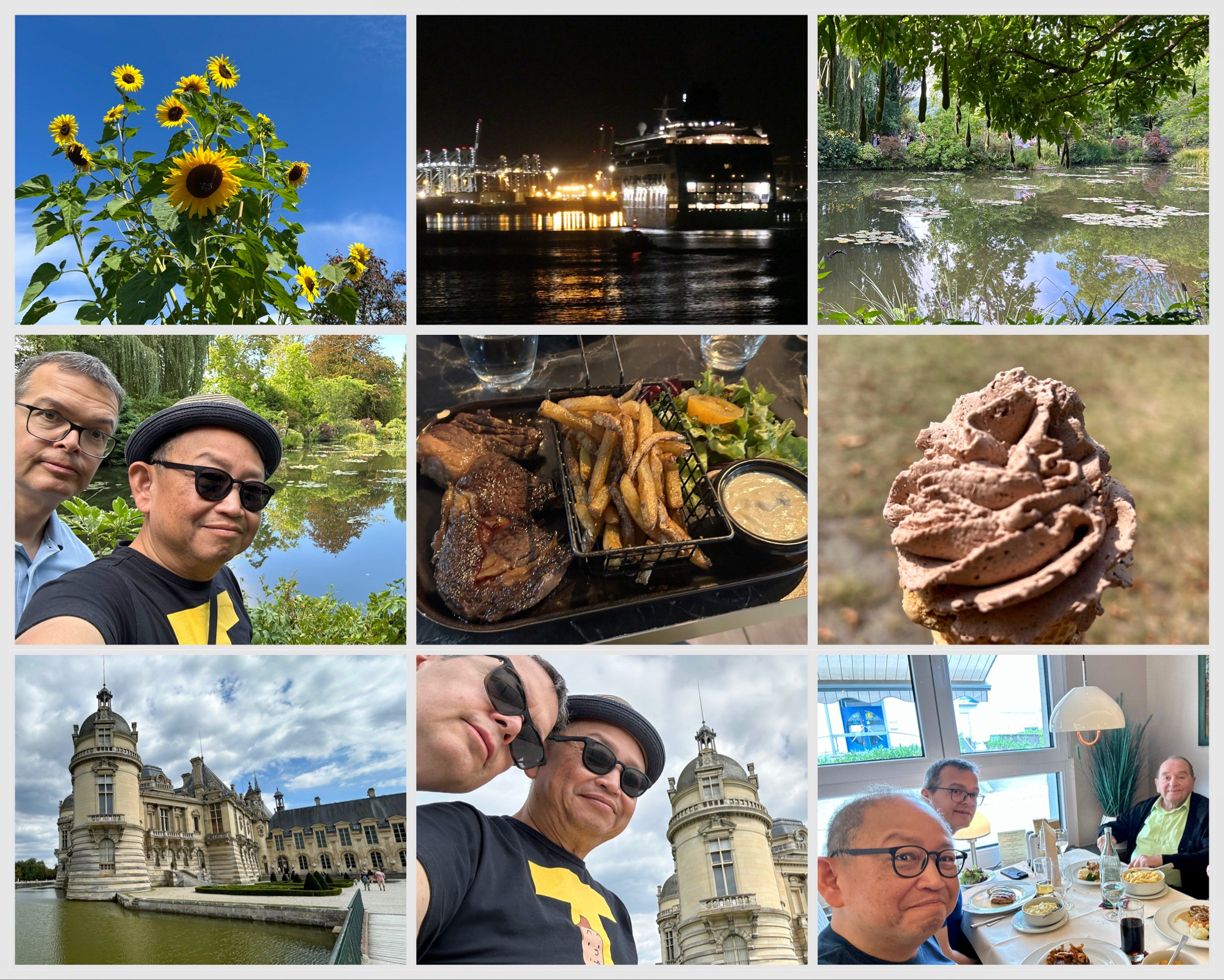 We're informed that the cathedral will be illuminated in vibrant colors at 22:45 hrs tonight. But after Monet's garden and Chantilly Castle, I'm just happy to put my feet up. We're only a 10-minute walk away, though.Our last hotel breakfast. It's just an Ibis Styles. You shouldn't expect more.